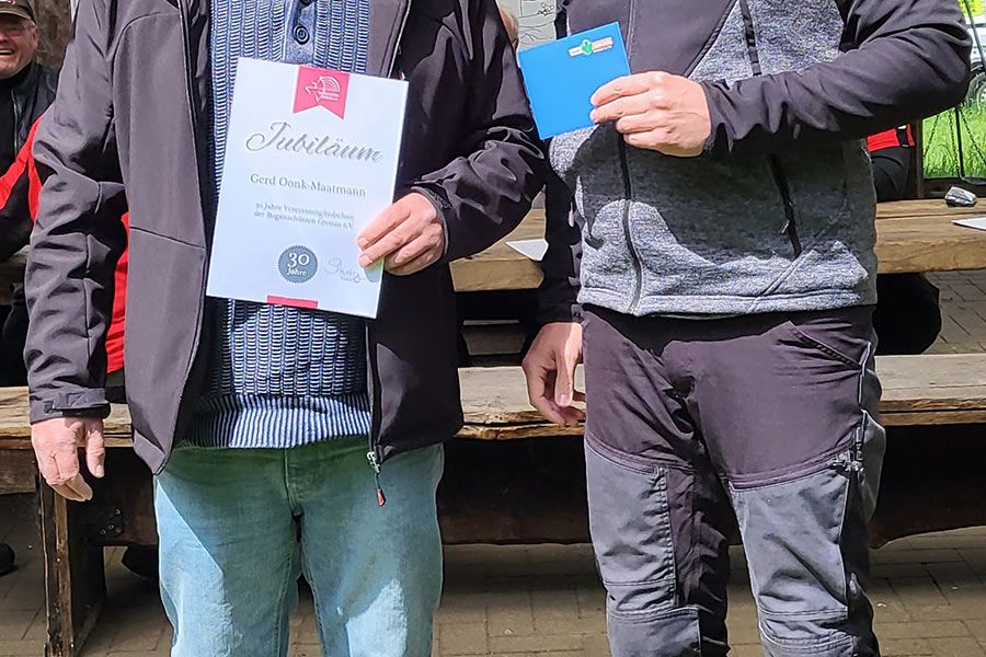 Auch einen weiteren Jubilar gab es. Für seine 30 jährige Mitgliedschaft erhielt Gerd Oonk-Maatmann eine Urkunde nebst eines kleinen Präsent.